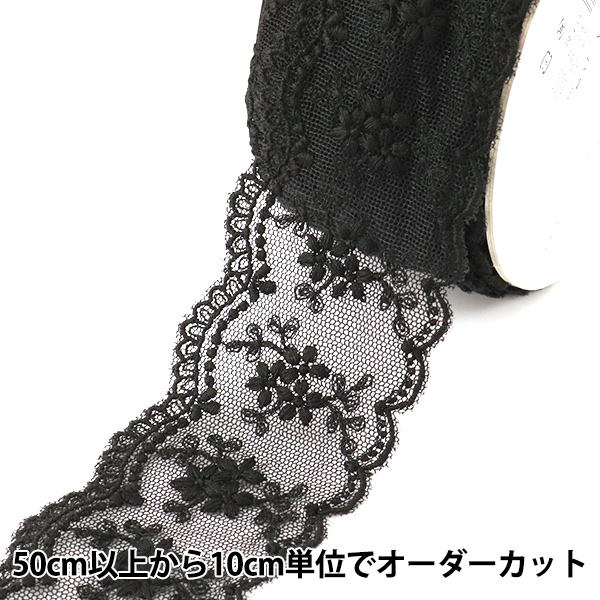 【数量5から】 レースリボンテープ 『チュールレース 約45mm幅 ブラック 24122-19』