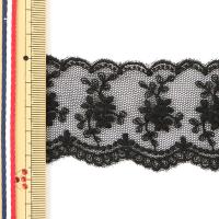【数量5から】レース 『チュールレース 約45mm幅 ブラック』 24122-19透け感があり上品なレースです。表糸も裏糸も綿素材を使用しているため、レーヨン糸と比べると光沢感の薄いナチュラルな雰囲気です。