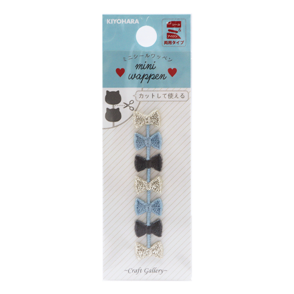 ワッペン 『ミニシールワッペン リボン WMS-06』 KIYOHARA 清原シール&アイロン両用タイプの便利なワッペン!マスクのワンポイントや持ち物に、気軽に貼って楽しめる大人かわいい小さなシール&アイロン両用タイプワッペンです。高級感のある上品なシルバーの刺繍部分がポイント。モチーフの端でカットしてお好きな小物にペタリ。
