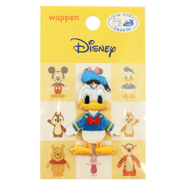 ワッペン 『ディズニーワッペン ドナルドダック MY466』 PIONEER パイオニア入学入園アイテムやディズニーオリジナルアイテム制作に!ディズニーの仲間たちのかわいいミニサイズのワッペンです。ワッペンはアイロン接着、シール接着どちらでも使える両用タイプです。[Disney キャラクター アップリケ 入園 入学 白 水色 黄色]