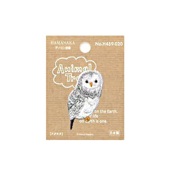 ハマナカ ワッペン Animal Tree (アニマル・ツリー) フクロウ [ワンポイント/大人向け/Hamanaka] かわいい動物たちを繊細なタッチで刺繍した人気シリーズです。一針ごとに表現した毛並みの模様やどこかほのぼのとした表情が魅力です。