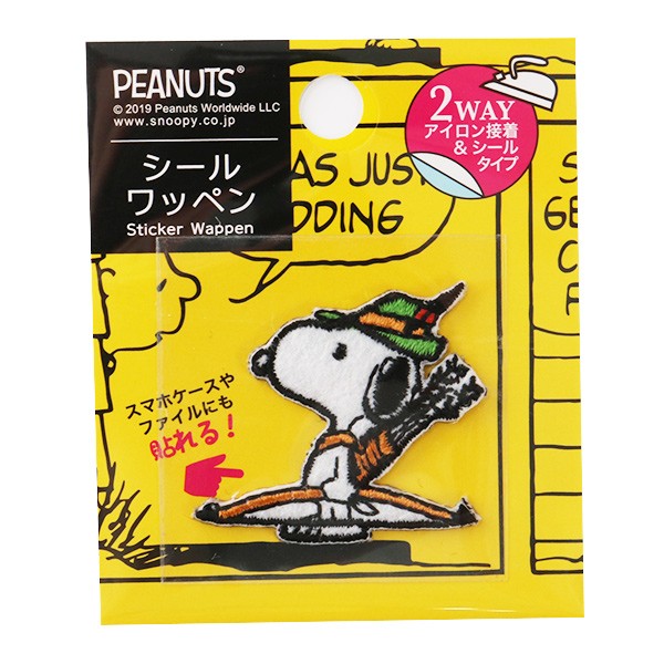ワッペン 『スヌーピー 刺しゅうシールワッペン 8604 ハント』 アイロン接着シール接着もアイロン接着もできるワッペンです。Peanutsに登場する大人気キャラクター、スヌーピーのワッペンです。