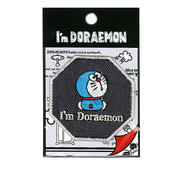 ポケットや襟元、小物や雑貨、入園入学アイテムのワンポイントに![I'm Doraemon ドラえもん キャラクター アップリケ 刺繍 スモック エプロン バッグ 袋 保育園 幼稚園 八角形]