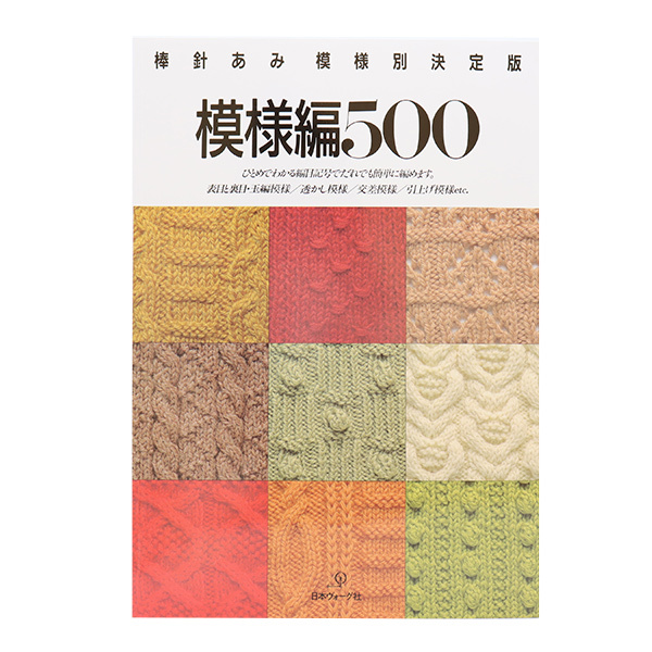 書籍 『模様編500 棒針あみ模様別決定版 NV7152』 VOGUE 日本ヴォーグ社編目記号の解説本です。表目・裏目・玉編/透かし/交差/引き上げ模様・・・棒針編みの模様を網羅し、編目記号も解説した決定版[書籍 手編み 編み物 棒針編み 模様 網目記号]