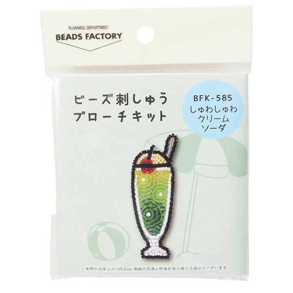 ビーズキット 『ビーズ刺しゅう ブローチキット しゅわしゅわクリームソーダ BFK-585』 MIYUKI ミユキビーズ刺しゅうで作るワンポイントブローチ♪丸特小ビーズをメインに多色使い、グラデーションや陰影を繊細に表現しました。