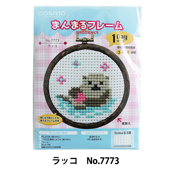 刺しゅうキット 『まんまるフレーム ラッコ No.7773』 LECIEN ルシアン cosmo コスモ初心者向け簡単クロスステッチキットまんまるフレームはクロスステッチをはじめたい人に最適なキットです。