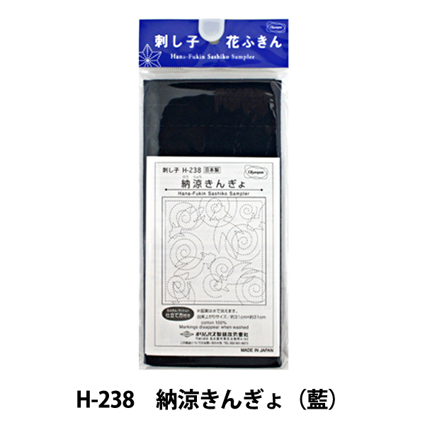 刺しゅう布 『刺し子 花ふきん 布パック 納涼きんぎょ (藍) H-238』 Olympus オリムパス