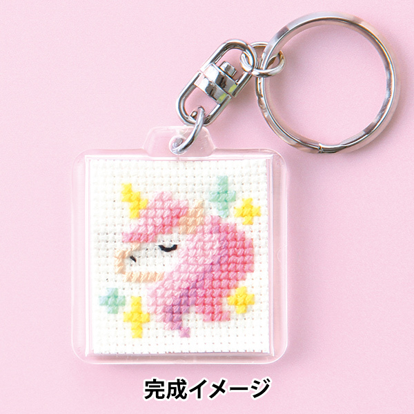 刺しゅうキット 『キーリング 刺しゅうキット ユニコーン KS-151』 Olympus オリムパスかんたんクロス・ステッチ!ゆめかわ♪―ファンシーカラーズ(fancy colors)―簡単にできるクロス・ステッチのキー・リングキットに