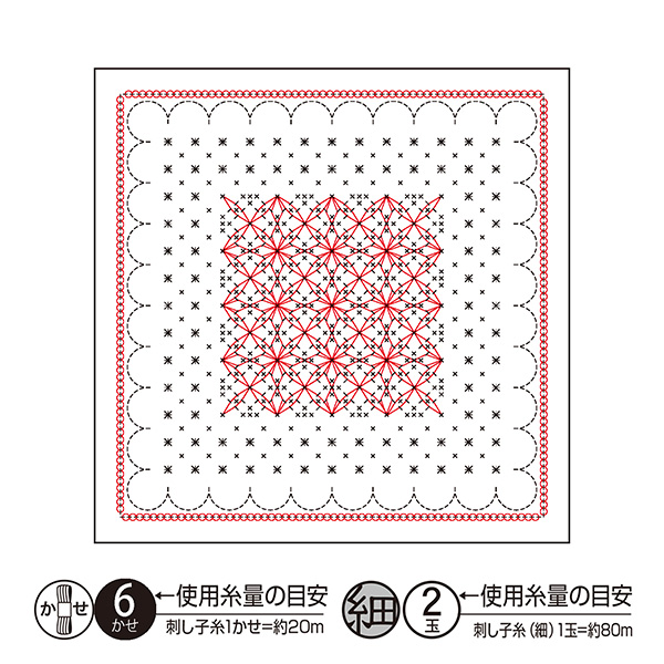 ◆使用糸量の目安:刺し子糸 6かせ(刺し子糸1かせ約20m)