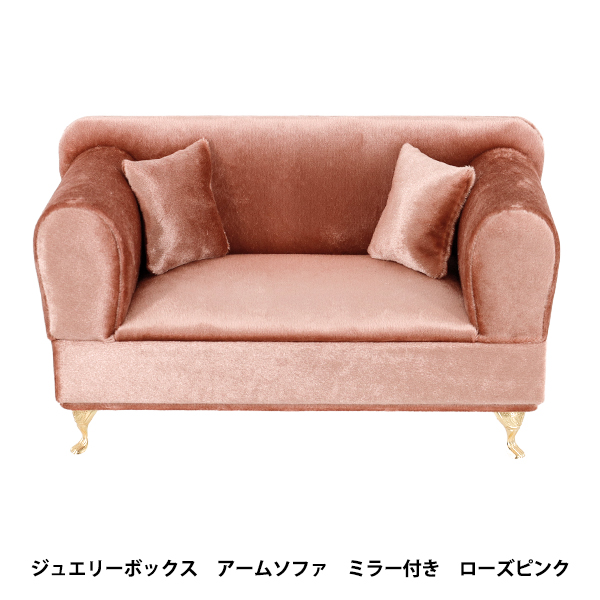 小物入れ 『ジュエリーボックス アームソファ ミラー付 ローズピンク QBHJB-1B』