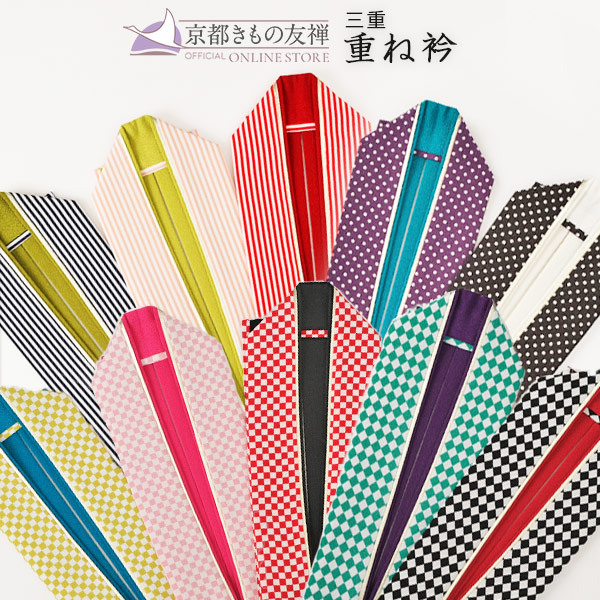 | 【商品名】 | 重ね衿 市松 アーガイル ストライプ ドット 三重衿 成人式 振袖 卒業式 袴用 伊達襟 伊達衿 水玉【日本製】 |