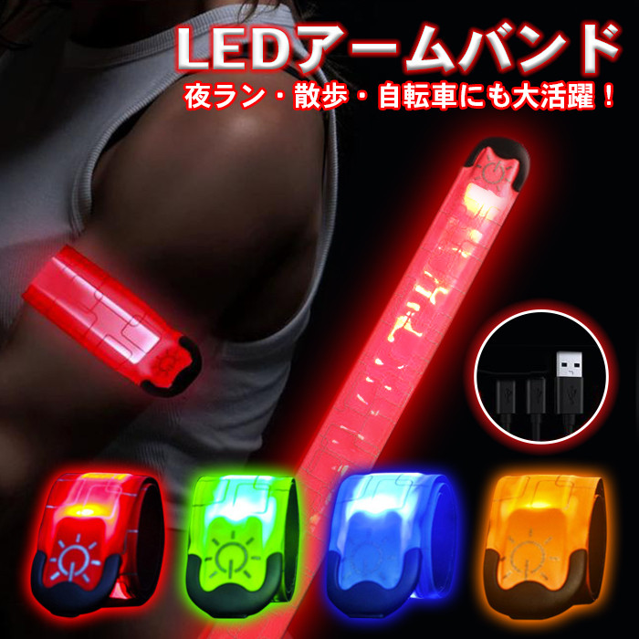 ランニング ライト LED 充電式 手首 腕 アームバンド ウォーキングライト 夜 ジョギング ライト usb 反射材 光る 夜間ランニング用