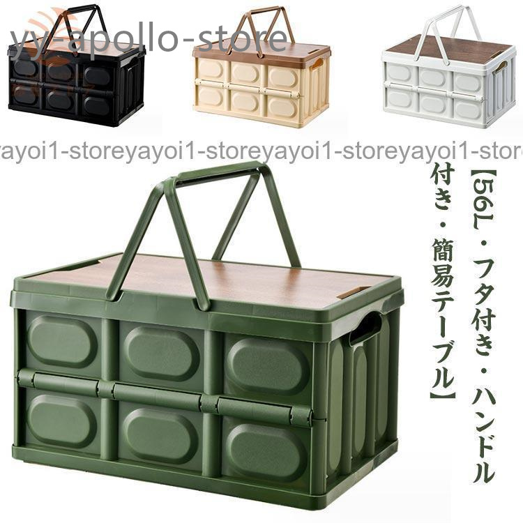 折りたたみコンテナ フタ付き 取っ手付き 56L 収納ボックス 木製蓋付き 大容量 アウトドア テーブル キャンプ 収納ケース 収納box 屋外 屋内