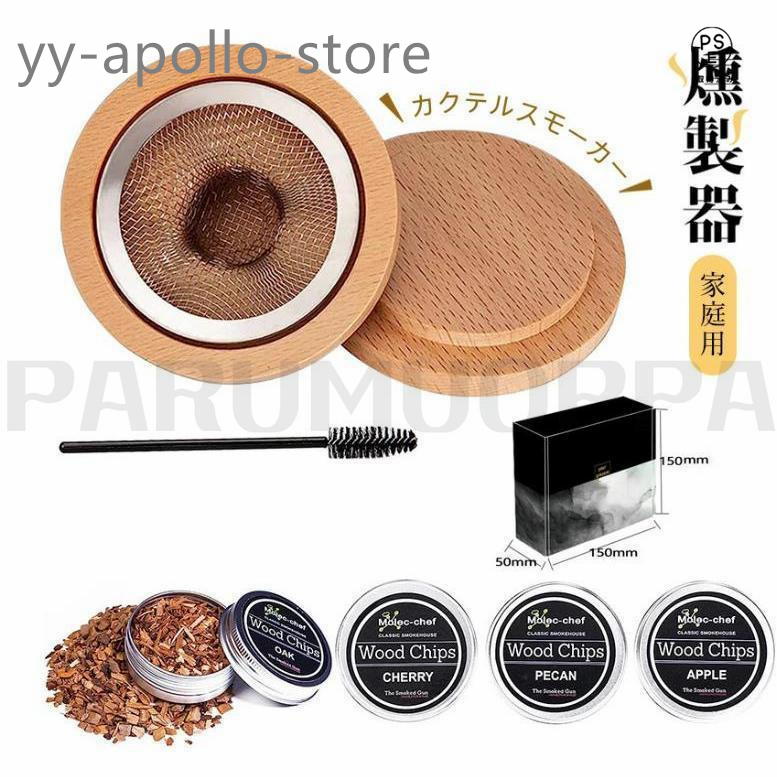【差し替え可能な燻製器セット】このカクテルスモーカーは4種のフレーバーセット100%天然木チップク、人工香料成分を含まず、デザインと包装が美しいです。