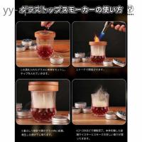 【便利な操作&DIYの楽しみ】 このグラストップスモーカーは、初心者でもプロでも非常に簡単に使用できます。 お酒を入れたグラスに本体に燻製器を入れる、トーチで燃焼させます。そして、チップを入れていきます。着火して数秒で煙がグラス内に充満。 2へ3分ほどで燻製完了。本体を離した途 端ウイスキーとスモークの芳しい。ご注
