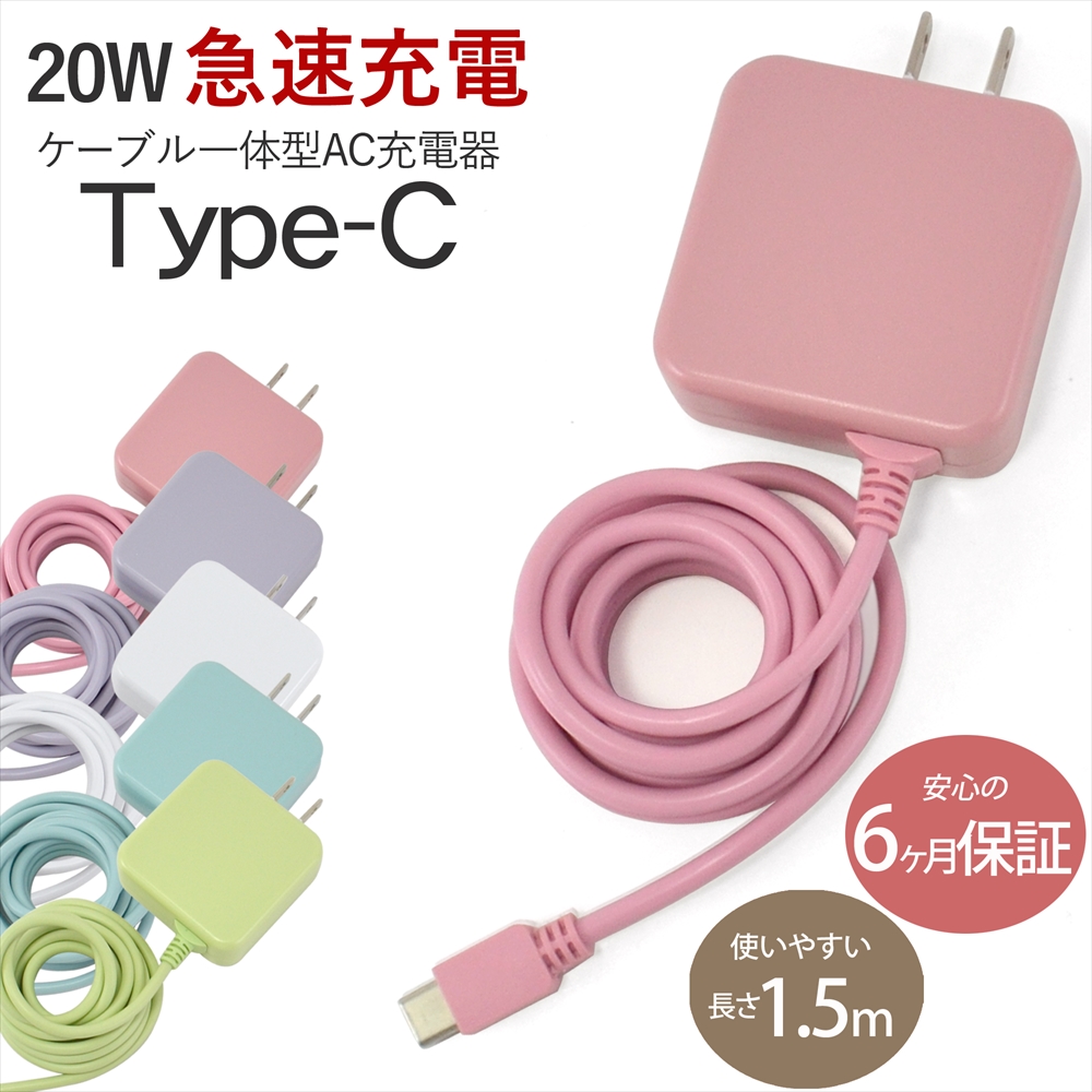 ・家庭用コンセントからUSB Type-Cコネクタ搭載のスマホやタブレットへの充電ができるAC充電器です。