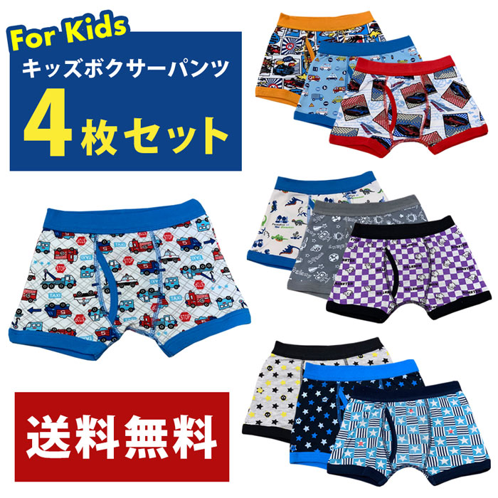 キッズ ボクサー パンツ 4枚セット 100 110 120 130 140 150 160 男の子 前開き アンダーウェア インナー 4枚組 ランダム