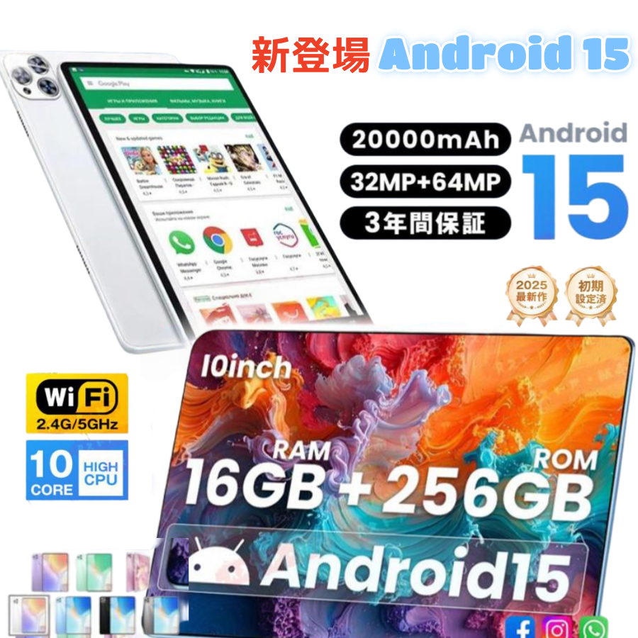 タブレット pc 本体 android15 10インチ 16+256GB おすすめ Wi-Fi 5G モデル GPS Bluetooth 通話対応 IPS液晶 大画面 軽量 在宅勤務 ネット授業 simフリー