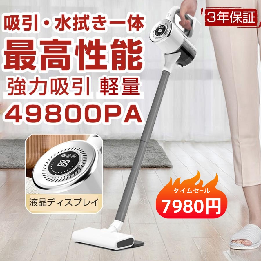掃除機 コードレス ハンディ 49800pa吸引力 自走式 強力吸引 充電式 吸引水拭去一体 5WAY スティック 軽量ハンディ掃除機 USB-TypeC充電式 省エネ 車両用 爆買