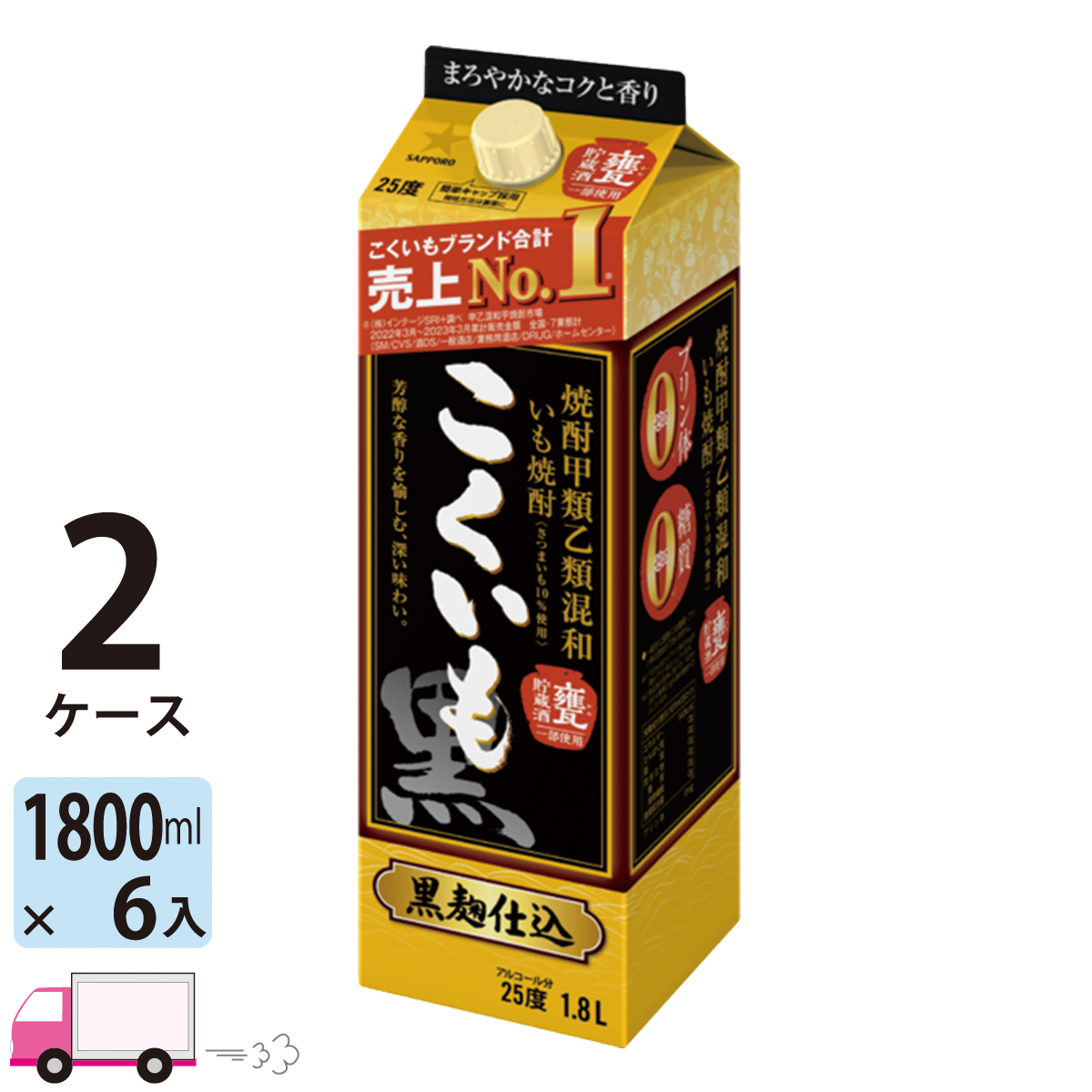 焼酎 こくいも 25度 芋焼酎 1800ml パック 1.8L 12本 2ケース(12本) 送料無料(一部地域除く) サッポロ