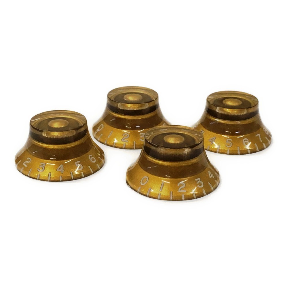 国内外の著名ブランド製ギブソンタイプギターに幅広く搭載されているエンボス文字(彫り文字)仕様のトップハットノブ(ベルノブ)