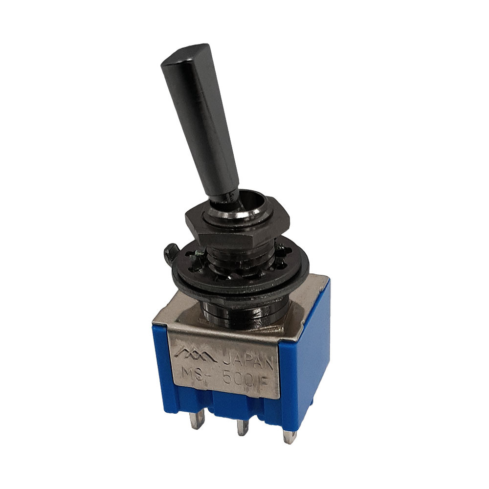 DPDT-6P ON-ON-ONタイプ、高級感のあるフラットレバー(ブラックフィニッシュ)。