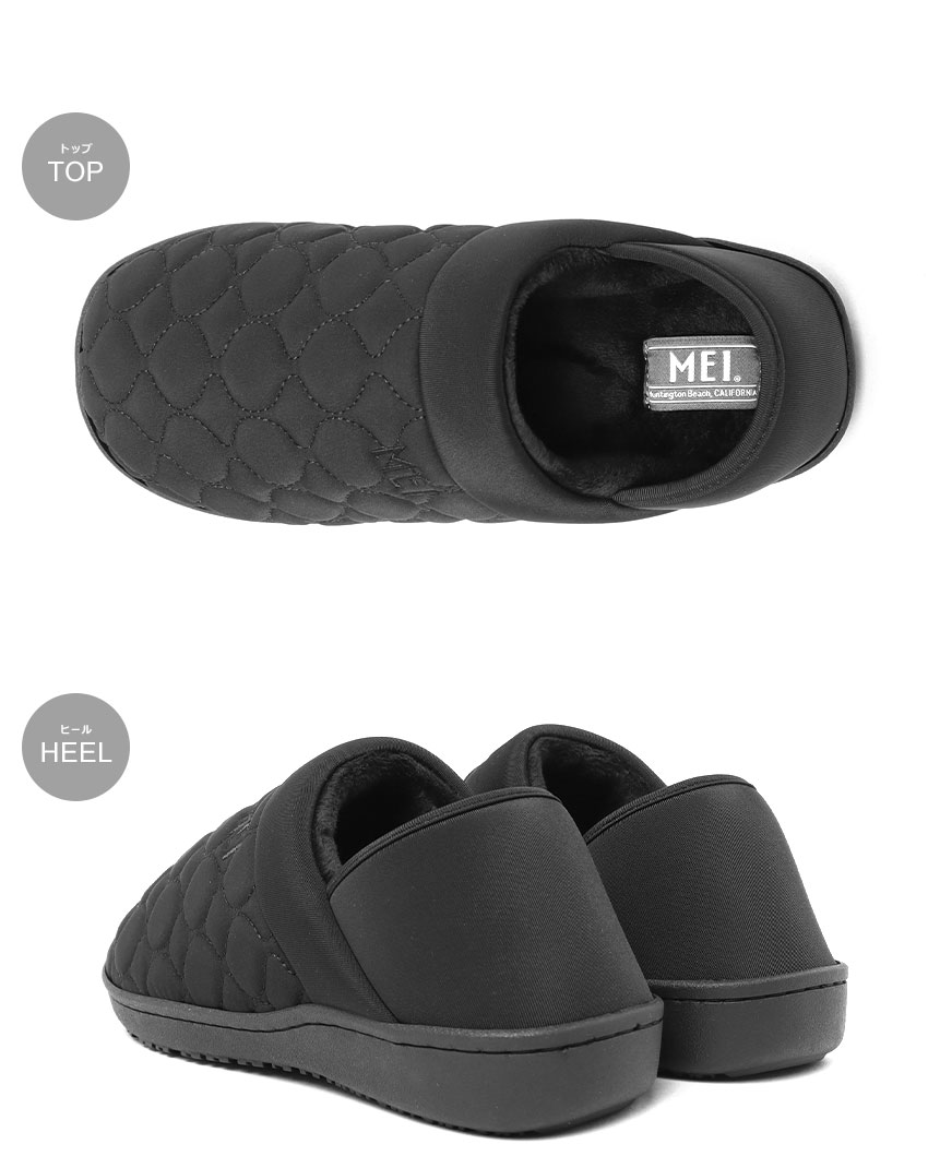踵を踏んでバブーシュスタイルとして、おうちのルームシューズとして様々なシーンで使えるモックシューズです。 アッパーはキルティング仕様、内側はボアライニングで暖かくふかふかな履き心地。 内履き、外履きのどちらにも対応しています。
