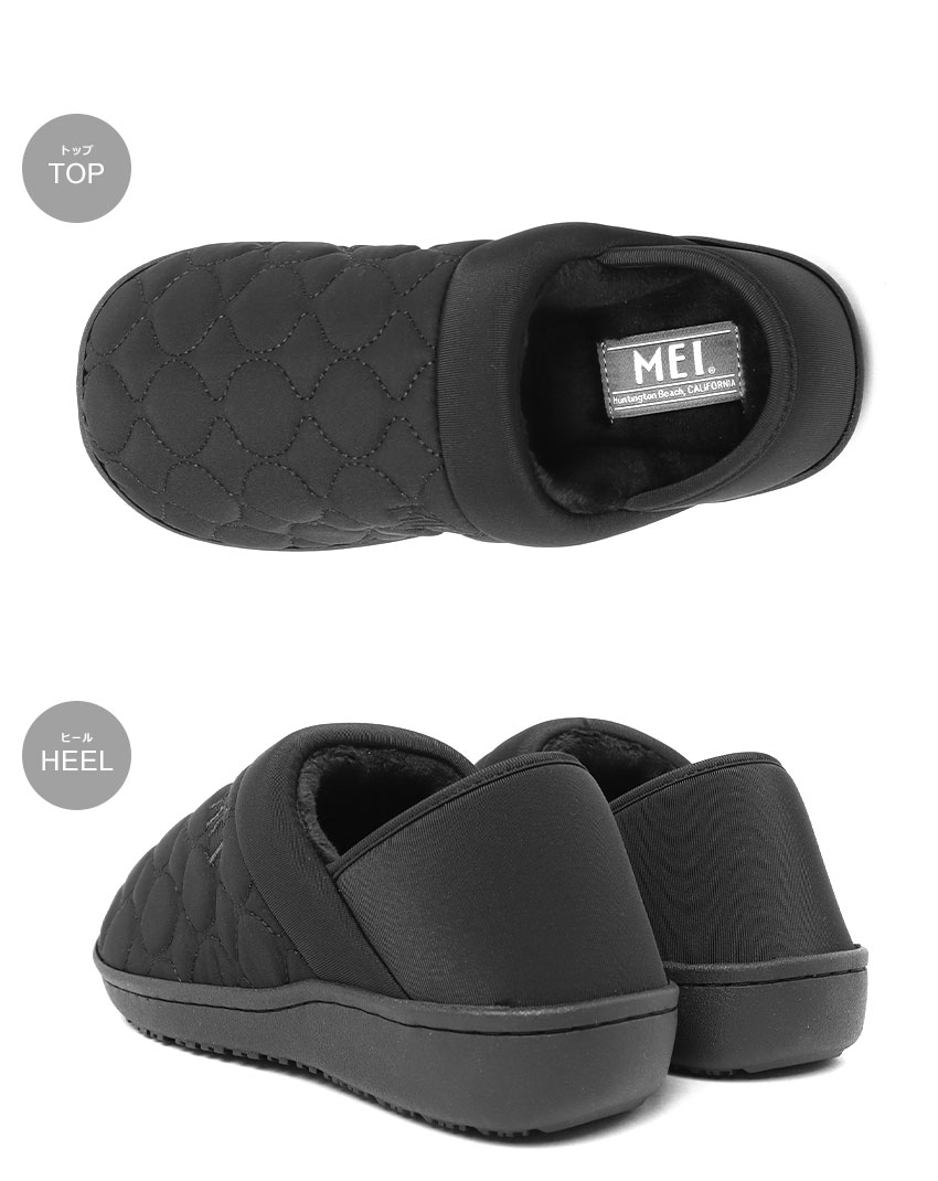 踵を踏んでバブーシュスタイルとして、おうちのルームシューズとして様々なシーンで使えるモックシューズです。 アッパーはキルティング仕様、内側はボアライニングで暖かくふかふかな履き心地。 内履き、外履きのどちらにも対応しています。