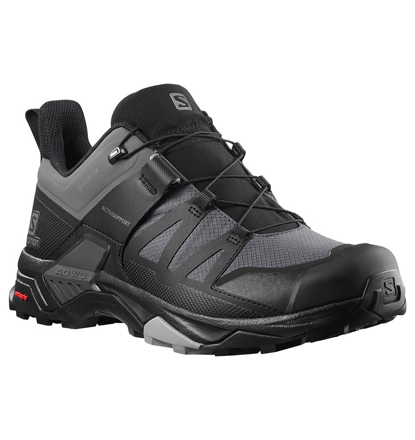 サロモンより「X ULTRA 4 WIDE GORE-TEX」です。 一新されたX-ULTRA 4のワイドフィットGORE-TEXバージョンで、アップヒルもダウンヒルもパワフルに。新しいシャーシの採用により、動きやすさを損なわずに傷めやすい関節の保護を高めました。トレイルランニングシューズに劣らない俊敏性から、優れた安定性とグリップ力、防水性まで、高度なトレイルに挑むためのあらゆる特長を備えたシューズです。 |