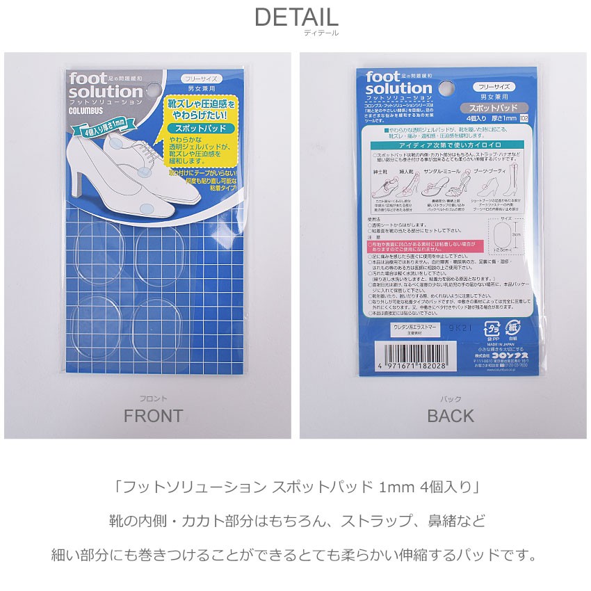 コロンブスより「フットソリューションスポットパッド 1mm 4個入り」です。
