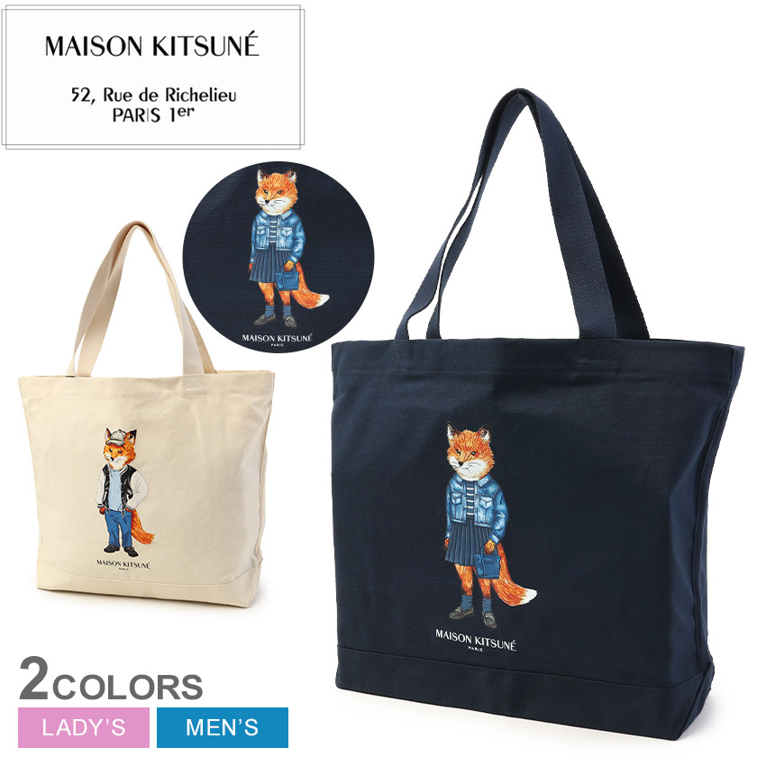 メゾンキツネより「ドレスド フォックス トート」です。 厚手の無地コットンキャンバスを使用したトートバッグ。手持ち・肩掛けどちらでも使える長めの持ち手で、デイリーユースに最適です。フロントにはおしゃれなドレスドフォックスプリントをあしらい、シンプルながら個性を演出。広々としたメインコンパートメントと内ポケット付きで収納力も抜群。普段使いからお出かけまで幅広く活躍します。 |