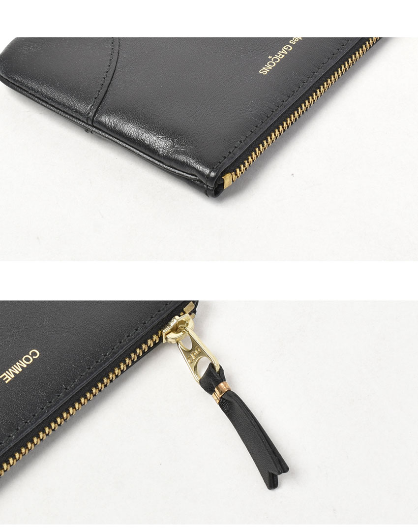 コムデギャルソンより「CLASSIC LEATHER LINE」です。 滑らかなレザー素材を使用したクラシックなアイテム。フロントの箔押しロゴがさりげないアクセントに。ファスナー開閉式で中はワンフロアのシンプルな構造。紙幣は2つ折りで収納でき、コイン&カードケース、ミニ財布、小物入れなど多用途に活躍します。バッグの中でもかさばらず、使い勝手の良い一品です。 |