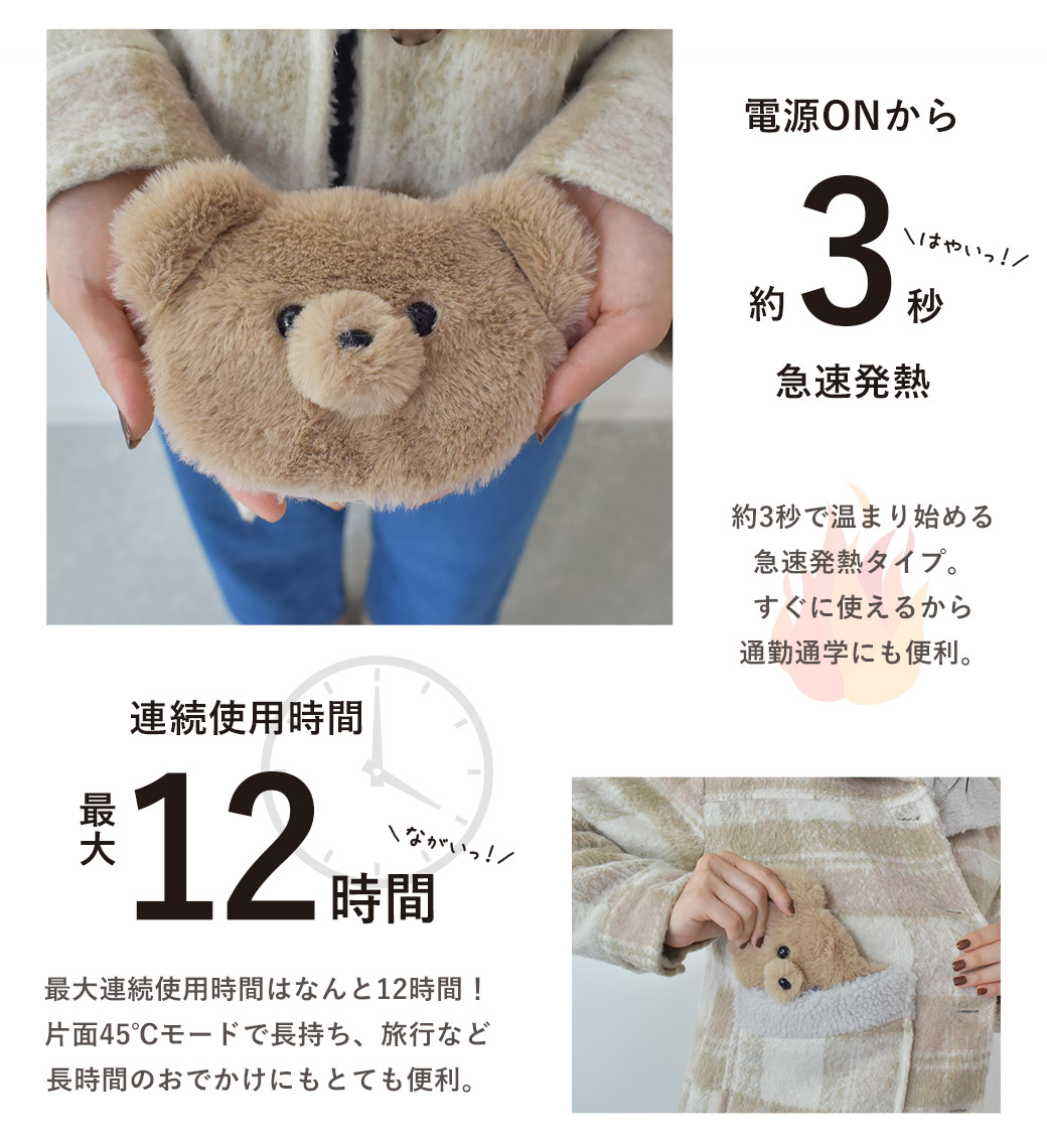 ■アイテム: 充電式カイロ ベアカバー付き ■商品名: ベアカバー ■原産国: China 他 ■商品特性1 保証期間:半年(購入から6ヵ月) ■商品特性2 ご使用前に、取扱説明書を必ずお読みのうえ、正しくお使いください。 ■商品特性3 長時間素肌に直接当ててのご使用はお止めください。 ■商品特性4 小さなお子様のご使用はお止めください。 |