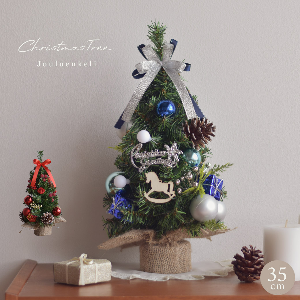 大人気クリスマスツリーブランドジュールエンケリより「ミニクリスマスツリー 35cm」です。 どこでも気軽に飾りやすい、35cmの卓上サイズ。玄関やリビング、子供部屋はもちろん、お店や会社のデスクまでちょっとしたスペースに簡単に飾れる小さめツリー。 小さいながらも種類豊富で華やかなオーナメントに、まるで本物のモミの木のようなたっぷりの葉でクリスマスムードを盛り上げます♪ オーナメントは固定されているので、飾りつけの必要もありません。届いたらすぐ、置くだけでおしゃれな北欧風クリスマスツリーの完成! 場所を変える時、オーナメントが落ちる心配もありません。 透明のおしゃれな箱入りで、そのまま飾るのもOK。収納箱としても便利です。プレゼントにもぴったり◎ リボン、松ぼっくり、オーナメントボール、プレゼントボックスなど飾りの種類も豊富で、どの角度から見ても可愛いデザインに仕上げました。 どんなインテリアにも馴染んで、お部屋がぐっとおしゃれになる北欧風ツリーをぜひあなたのお部屋に。 |