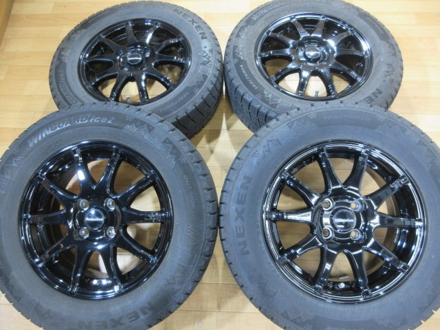 E12 ノート DJ デミオ マツダ2 フリード 装着に ブラック アルミホイール スタッドレス 4本セット 4H-100 14インチ 185/70R14 2022年