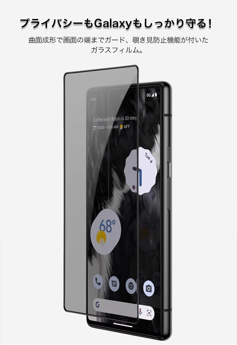 Google Pixel フィルム 覗き見防止 強化ガラス 耐衝撃 おしゃれ 液晶保護フィルム 9H 高硬度 プライバシーを守る ラウンドエッジ 飛散防止 爆買 クリスマスプレゼント