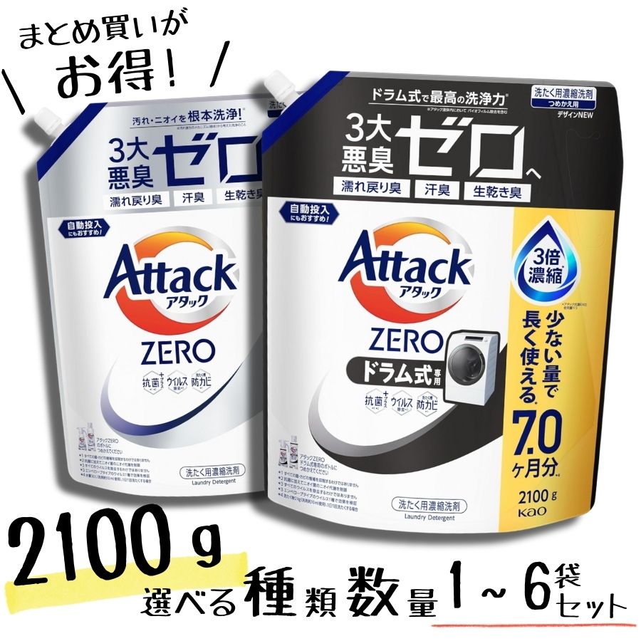 【選べる 種類 単品 / 3袋セット / 6袋 セット】アタックZERO 詰め替え 2100g