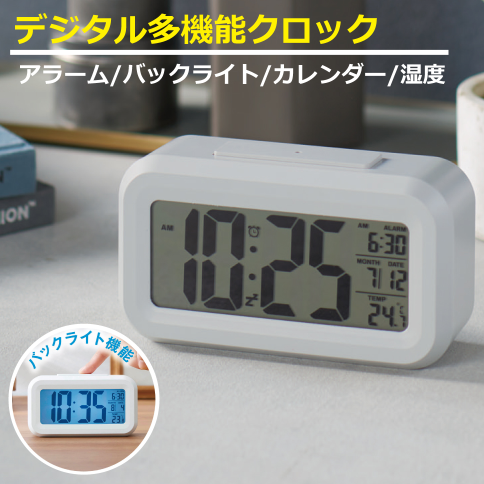 サイドテーブルや勉強机など省スペースに置けるコンパクトな目覚まし時計。