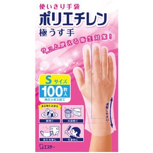 エステー 使いきり手袋 ポリエチレン 極うす手 Sサイズ 100枚入