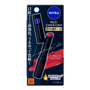 ▼5000円以上送料無料 (但し沖縄県、離島などは別途送料負担があります) 花王 ニベア リッチケア&カラーリップ 色持続タイプ ノーブルレッド 2gは口紅のように高発色、うるおって色続く。高密着美容オイル(保湿成分)配合 ローズヒップオイル(カニナバラ果実油)、アミノ酸系保水成分(ラウロイルグルタミン酸ジ(フィトステリル/オクチルドデシル))つやシールド層が浮き出て唇をコーティング(塗布後、3分程お待ちください)、色つや続く。無香料。紫外線から唇を守ります。UVカット成分配合(SPF26/PA++) 【4901301434227】