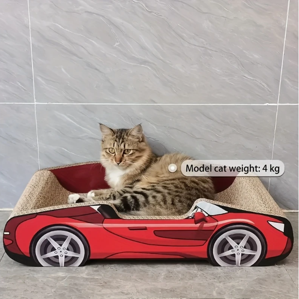 赤いスポーツカー型猫用爪とぎ、丈夫な段ボール、15.4ポンド以下のお猫様向け