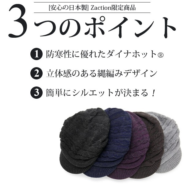 やさしい温熱効果で、効率的に暖める東レの『ダイナホット®』を使用したZactionオリジナルのキャスケットです。