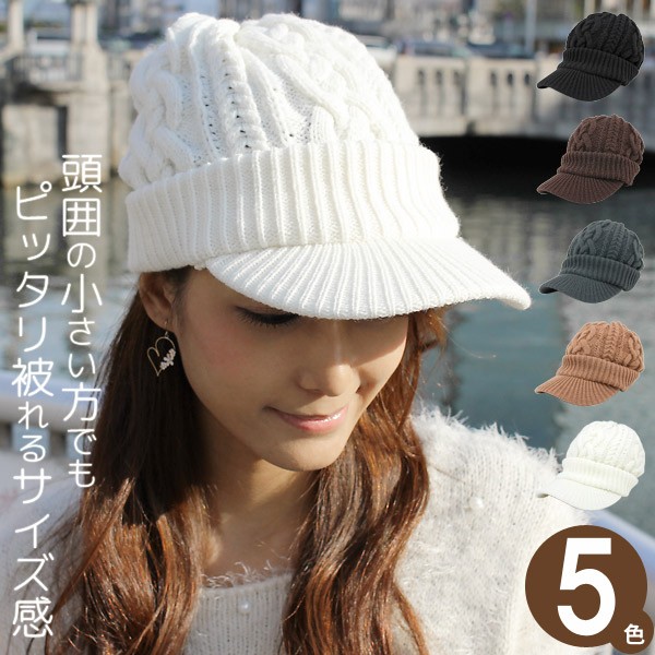 冬用の厚手タイプのつば付きニット帽はボリュームがあるので小顔効果も期待できます。