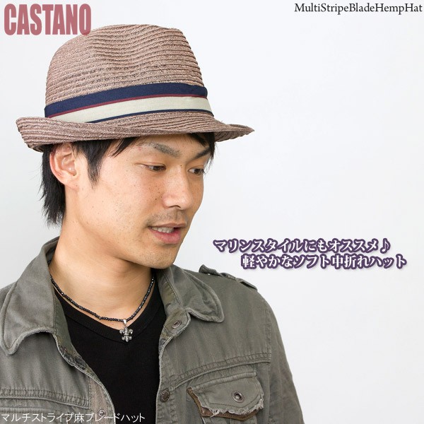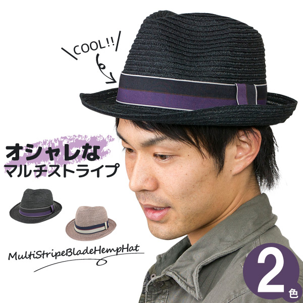 中折れハット 春夏 メンズ ペーパーハット 麦わら帽子 マルチストライプ麻ブレードハット