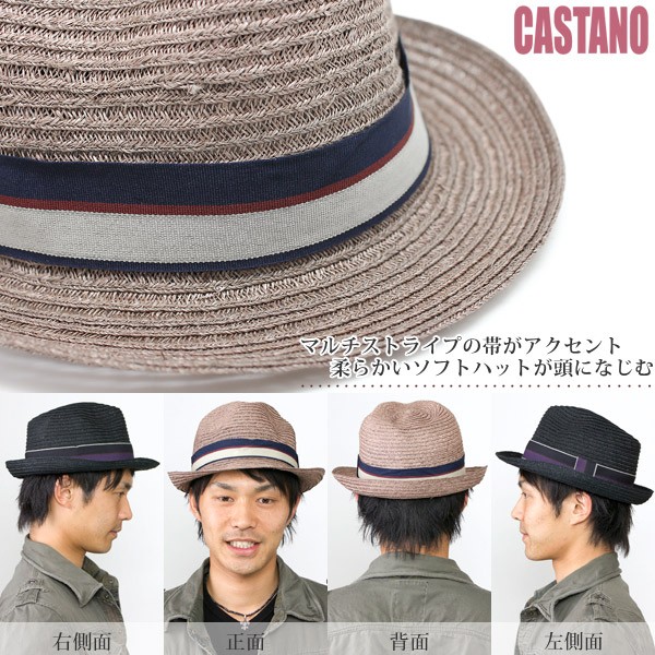 麦わら帽子 メンズ ハット 春 夏 春夏 ペーパーハット ベージュ ブラウン ブラック サイズ調整 りぼん リボン CASTANO かっこいい おしゃれ 10代 20代 30代 40代 50代