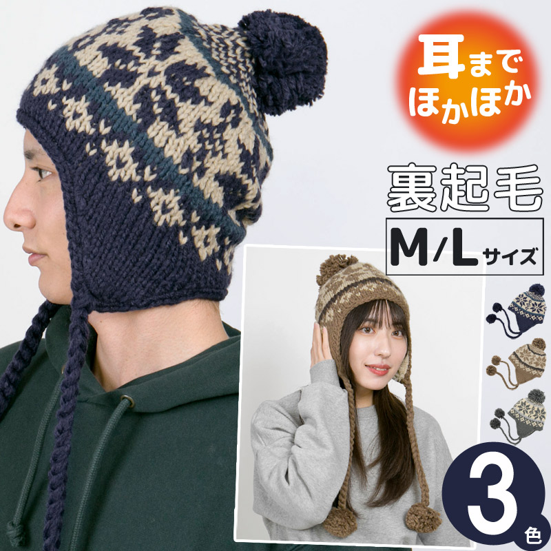 | サイズ | Mサイズ:サイズ表記55.5〜57.5cm(頭囲:約55.5〜57.5cm、幅:約24cm、高さ:約28cm[※耳あての端からボンボンは含まず]、紐の長さ(ボンボン含む):約28cm、ボンボン直径(頭部):約10cm、ボンボン直径(紐部):約5cm) Lサイズ:サイズ表記58〜59.5cm(頭囲:約58〜59.5cm、幅:約26cm、高さ:約29cm[※耳あての端からボンボンは含まず]、紐の長さ(ボンボン含む):約28cm、ボンボン直径(頭部):約10cm、ボンボン直径(紐部):約5cm) |