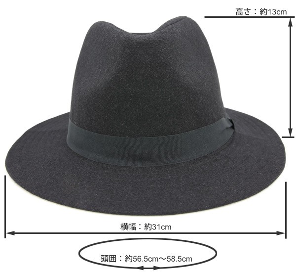| サイズ | ワンサイズ(頭囲:約56.5〜58.5cm[紐でサイズ調整可能]、高さ:約13cm、横幅:約31cm[つばも含む]) |