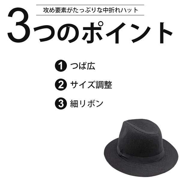 中折れハットには少しクールなイメージがつきますが、こちらはカジュアルな装いにもピッタリなデザインですので、幅広いスタイルで楽しめますよ。