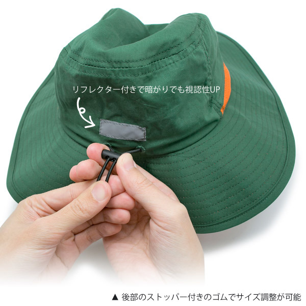 後部のストッパー付きのゴムで若干のサイズ調整が可能で、リフレクターも付いているので暗がりでの視認性もよいです。