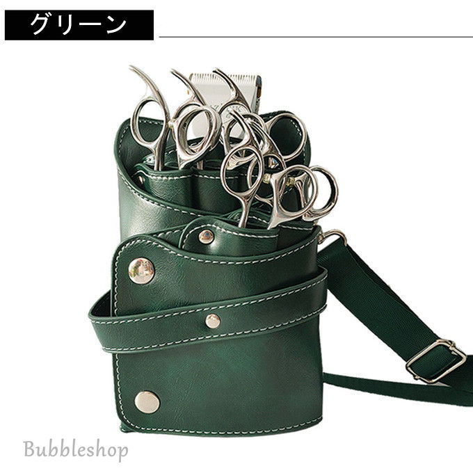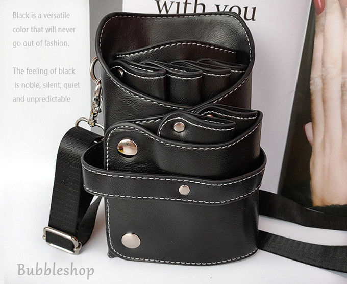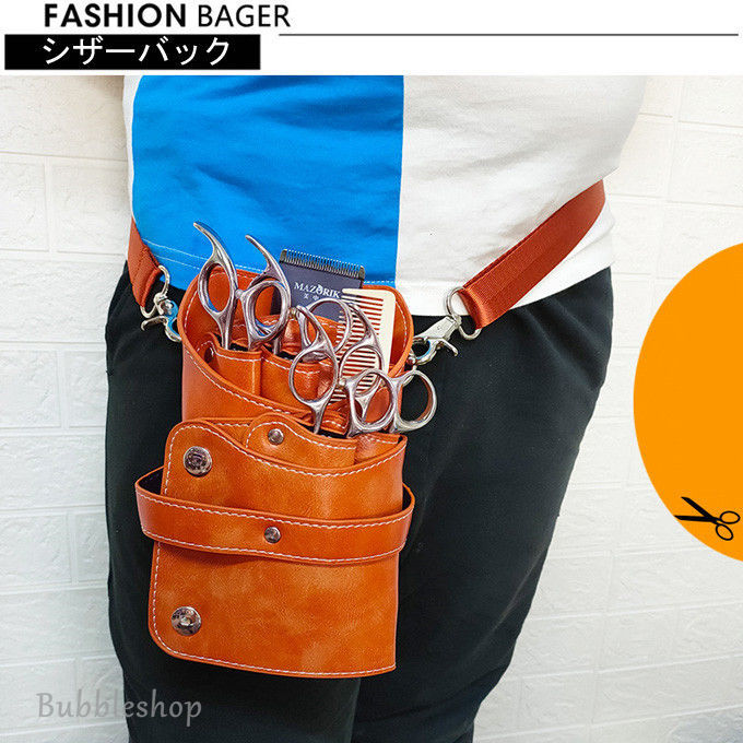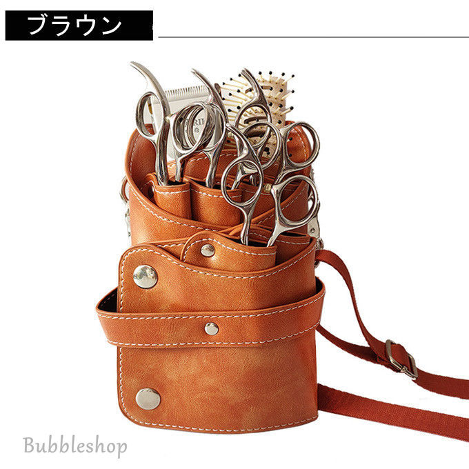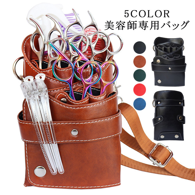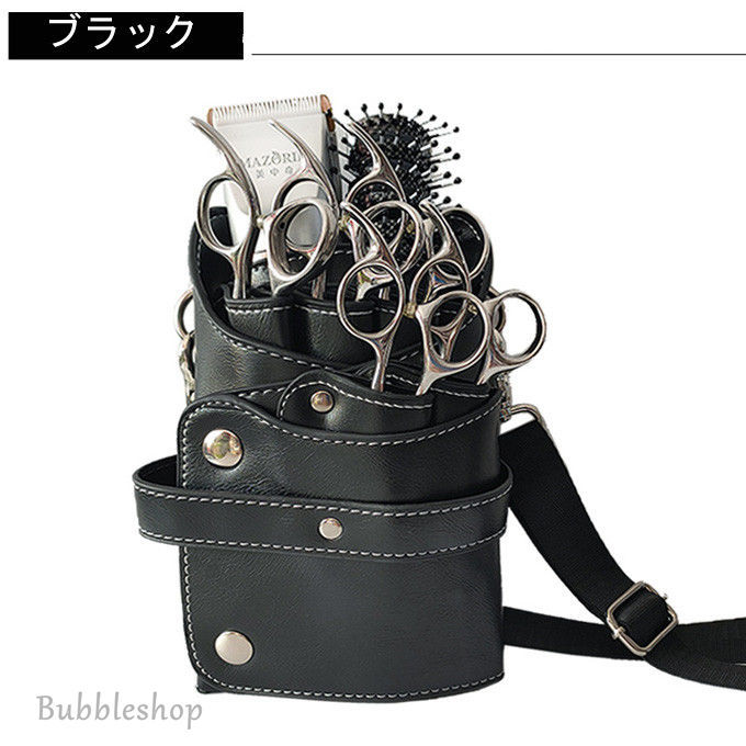 シザーバック PUバッグ 美容師専用バッグ 美容院 トリマー ハサミ 6丁 ベルト付き 専用 収納バッグ はさみ、ヘアクリップ、ブラシ、などの収納に適して
